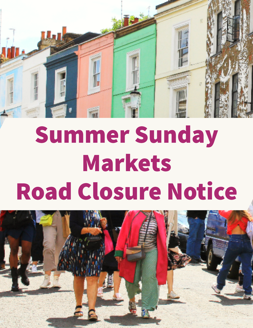Portobello Road will be closed to traffic every Sunday from 19 June to 7 August to celebrate the Summer Sundays