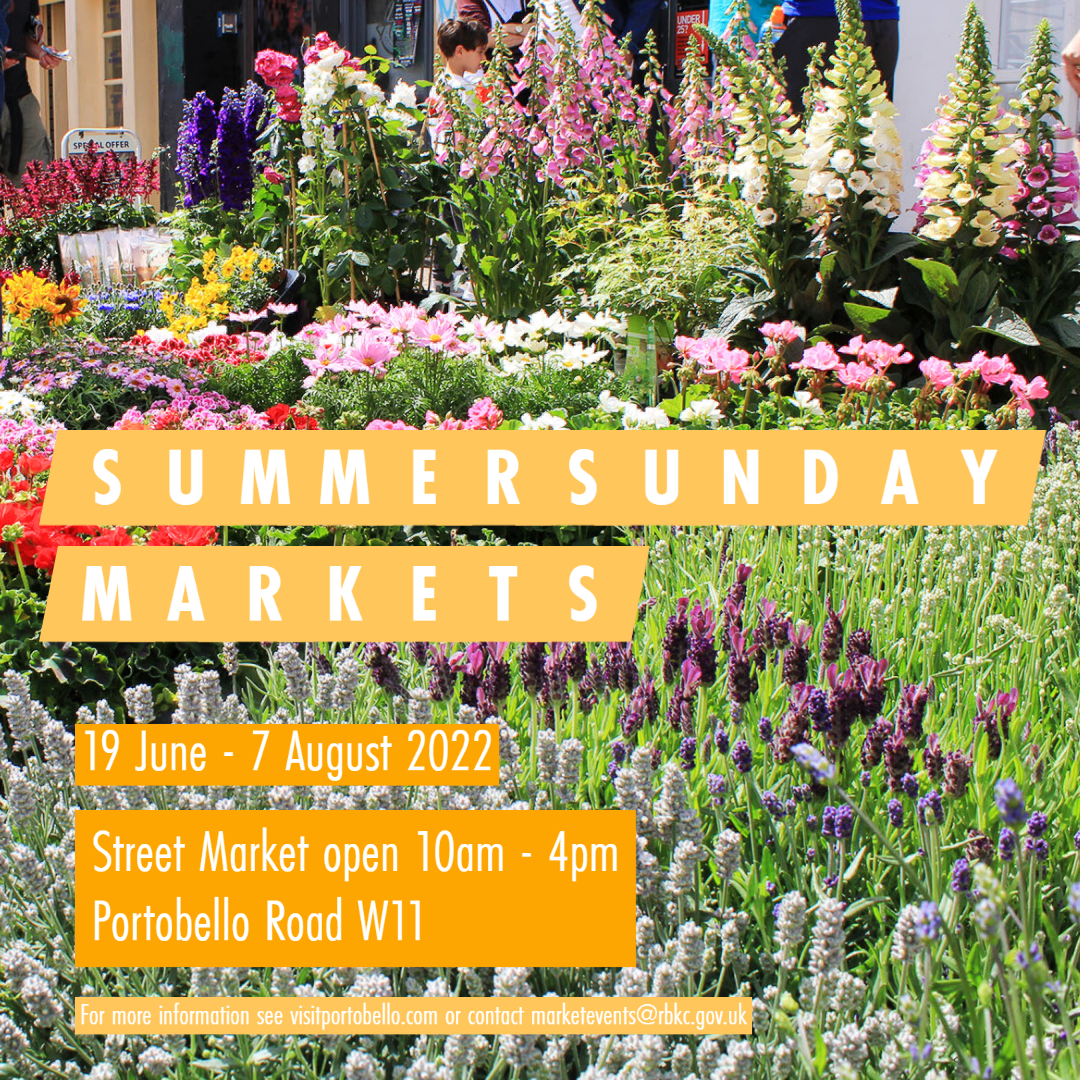 Summer Sunday Markets are returning to Portobello Road. From Sunday 19 June to Sunday 7 August, the market will be open on Sundays from 10am – 4pm.